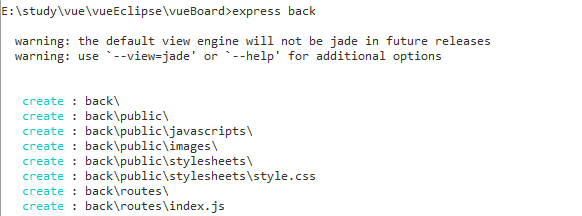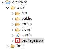 생성된 nodejs [back] 프로젝트 (front 폴더는 vuejs 프로젝트 폴더)